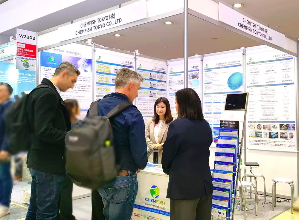 CHEMFISH 作為專注于半導(dǎo)體及先進(jìn)電子材料領(lǐng)域的專業(yè)供應(yīng)商,攜多款核心產(chǎn)品與解決方案正式參展,現(xiàn)場(chǎng)吸引了眾多日本及歐美大手企業(yè)駐足交流,反響熱烈。展會(huì)現(xiàn)場(chǎng)CHEMFISH團(tuán)隊(duì)熱忱接待前來(lái)咨詢的每一位客戶,專業(yè)性和服務(wù)態(tài)度受到客戶一致肯定。