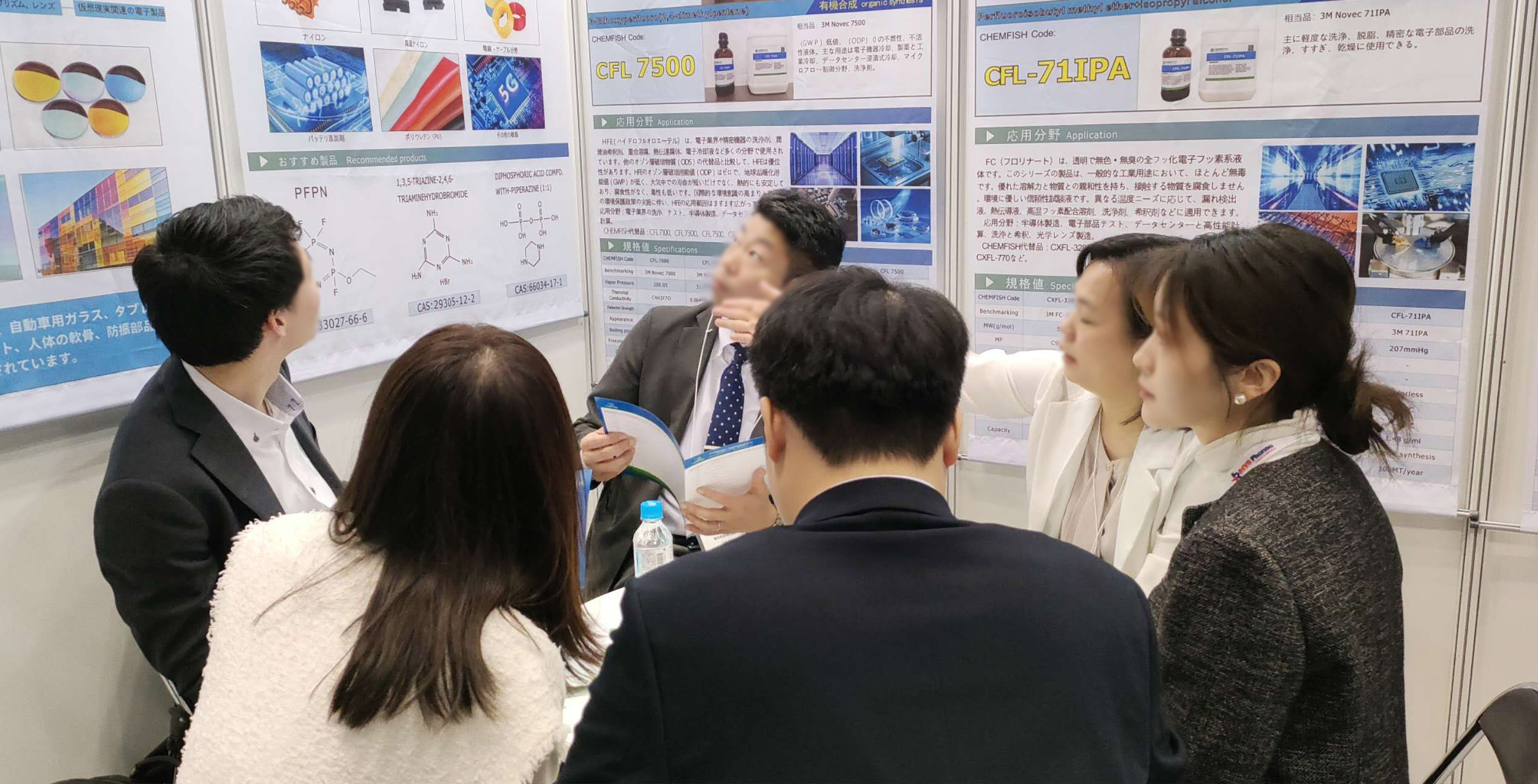 CHEMFISH與中村聯合展位在本次展會上大放異彩,人氣旺盛。除了展示醫藥中間體產品,更重點推出了一系列高新材料,包括半導體氟化液、液晶類產品以及高新氟化物等。這些高新材料憑借其先進的技術和廣泛的應用前景,吸引了眾多參觀者的駐足和咨詢。有客戶當場下單,對CHEMFISH的產品質量和創新能力給予了高度評價。客戶表示,CHEMFISH的產品不僅品質卓越,而且緊跟行業發展趨勢,能夠支持他們不斷探索前沿科技的需求。